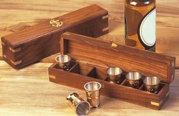 Set del Rum con 6 bicchierini in metallo ottonato in scatola di legno