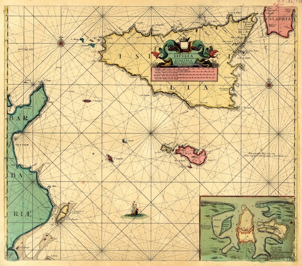 Carta Nautica Sicilia Malta Gozo canale di Sicilia 1690