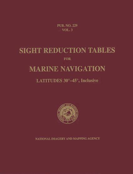 This six-volume series of Sight Reduction Tables for Marine Navigation is designed to facilitate the practice of celestial navigation at sea by the Marcq Saint Hilaire or intercept method. The tabular data are the solutions of the navigational triangle or which two sides and the included angle are known and it is necessary to find the values of the third side and adjacent angle. The tables, intended for use with The Nautical Almanac, are designed for precise interpolation of altitude for declination by means or interpolation tables which facilitate linear interpolation and provide additional for the effect of second differences when required. The concept, design, development, and preparation of these tables are the results of the collaborative efforts and joint accomplishments of the National and Mapping Agency, the U.S. Naval Observatory, and Her Majesty's Nautical Almanac Office, Royal Greenwich Observatory. The tabular material in identical format has been published in the United Kingdom by the Hydrographic Department, Ministry of Defense (Navy), as N.P. 401. The reprint was complied on a Hewlett Packard K420 server with an HP C180 client workstation, and was composed in its entirety as a digital document.