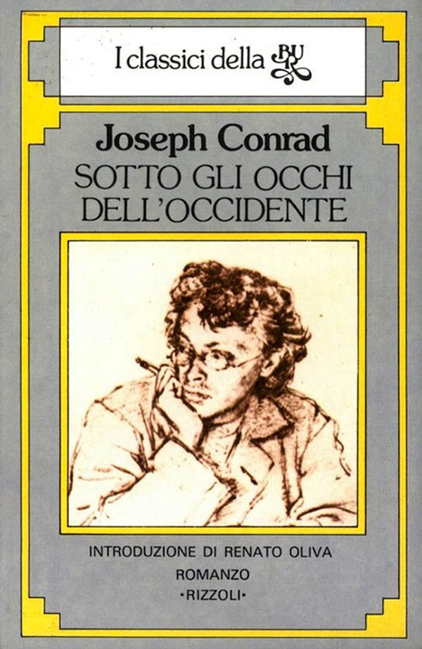 Questo romanzo è un classico della letteratura contemporanea. Narra la vicenda di una provocazione montata dalla polizia zarista con il fine di compromettere un gruppo di rivoluzionari che agisce dall'estero. AI centro dell'ingranaggio campeggia la tormentata figura di Ramuzov, strumento e insieme vittima della trama imbastita dai servizi segreti. Gli fanno ala, di volta in volta e insieme, personaggi tragici, grotteschi e umanissimi. Rivoluzionari che sfiorano la santità nella predeterminazione con cui si dedicano alla loro furia sovvertitrice, terroristi senza scrupoli e pronti a ricorrere a ogni mezzo (compresi quelli usati dai loro perversi avversari), politici conseguenti nel distruggere un sistema odiato e oppressore eppure disponibili per tutti i compromessi, uomini e donne comuni devastati dal desiderio di cambiare il mondo, dall'insopportabilità contro sordide ingiustizie, esposti a debolezze, cedimenti, paure e pietà che non possono né sanno né vogliono permettersi. « Sotto gli occhi dell'Occidente» ha intuito realtà storiche, sociali e psicologiche della Russia e dell'Europa prima della rivoluzione bolscevica: rimane di sconcertante attualità perché, a parte l'altissimo valore letterario dell'opera, ha saputo cogliere e descrivere varie, ambigue e cruciali forme del comportamento che contraddistingue gli uomini in rivolta nel XX secolo.