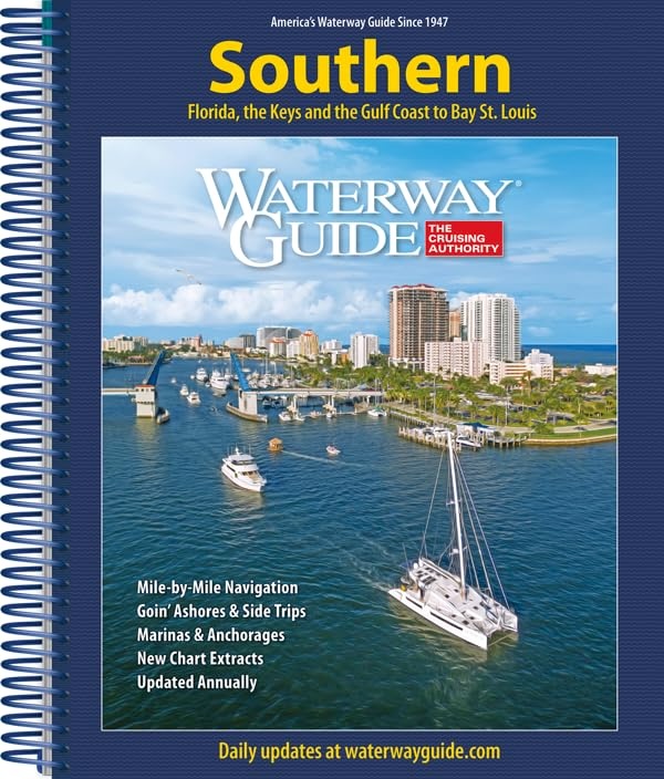 Updated annually, the Waterway Guide Southern 2025 edition is the indispensable cruising companion for boaters exploring Florida's East coast, the St. John's River, the Okeechobee Waterway, the Keys, Florida's West coast and the Gulf of Mexico to Bay St. Louis, Mississippi. The guide features mile-by-mile navigation information, aerial photography with marked routes, marina listings and locator charts, anchorage information and expanded "Goin' Ashore" articles on ports along the way. Helpful cruising data like GPS waypoints, detailed planning maps, distance charts and bridge tables help get cruisers there safely. Heavy laminated covers with bookmarker flaps ensure durability and easy use in the cockpit and at the helm.