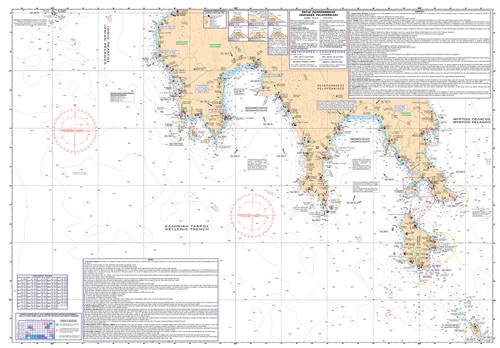 in plastica scala 1:244.000 From O. Kyparissía up to Monemvasiá Gulf. Includes: SW coast of Peloponnese, Messiniakós Gulf, Lakonikós Gulf, Monemvasiá Gulf Islands of Kythera and Antikythera. Larger scale charts included in the back side: O. Navaríno and Pylos marina; Methóni harbour; Koróni harbour; Kalamáta harbour and marina; Approaches and harbour of Gytheio; O. Vátika and N. Elafónisos; Diakófti harbour (Kythera); Monemvasiá gulf and marina.