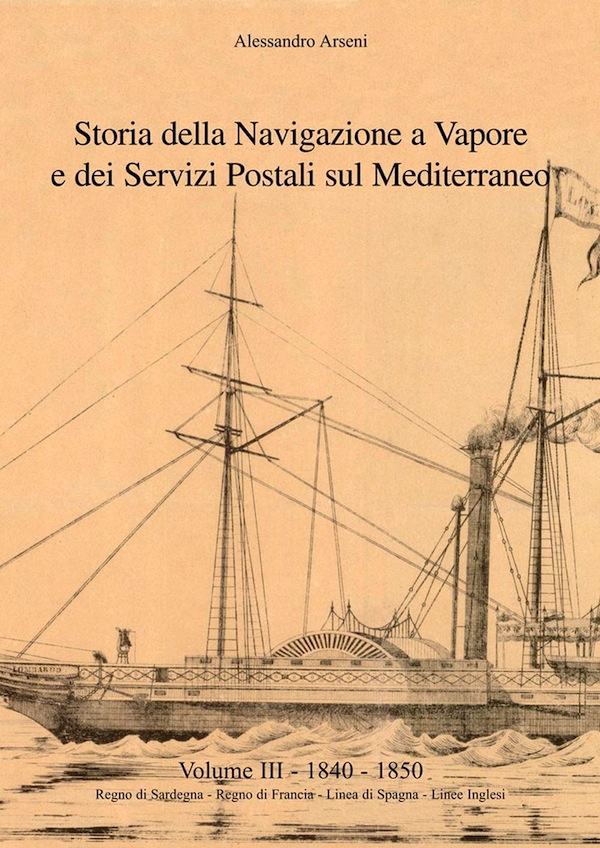 Terzo Volume della Collana "Le Navi a Vapore", che tratta la Storia della Navigazione a Vapore, dal 1840 al 1850, del Regno di Sardegna, Regno di Francia, le linee con l'isola di Sardegna, la Linea di Spagna e le Linee inglesi lungo le coste d'Italia. Il volume riporta oltre 23.000 date, 26 Decreti tra gli Antichi Stati per regolare la Navigazione a Vapore, oltre 100 riproduzioni di lettere viaggiate con i vapori, cartine esplicative e documenti. Una enorme fonte di dati per lo studente e l'esperto di Storia delle Comunicazioni.