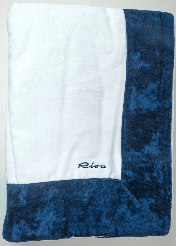 In barca, in spiaggia o in piscina, porta con te il telo mare Riva, con il marchio che spicca nel colore acquamarina e blu. Lo stile solare e raffinato del cantiere nautico più famoso al mondo è perfettamente racchiuso in questo accessorio distintivo, realizzato in morbida spugna di cotone. Ovunque tu sia, questo telo mare certifica la tua appartenenza al club esclusivo dei fan di Riva. Misure: 180x100.