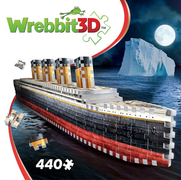 Percorri un viaggio storico da Southampton a New York assemblando questo puzzle 3D da 440 pezzi dell'indimenticabile RMS Titanic! Uno dei tre transatlantici di classe Olympic, le sue dimensioni e il suo lusso lo hanno posto all'avanguardia del trasporto passeggeri transatlantico prima della tragica collisione con un iceberg nel 1912 durante il suo viaggio inaugurale. Pezzo dopo pezzo, fai riemergere questa nave archetipica dalle profondità del passato e riconquista la sua gloria! Dimensioni del puzzle completo: cm. 77 x 7,5 x 14