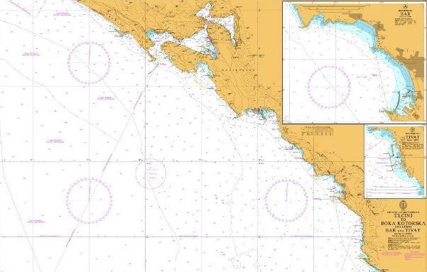 Carta Nautica Ulcinj to Boka Kotorska including Bar and Tivat