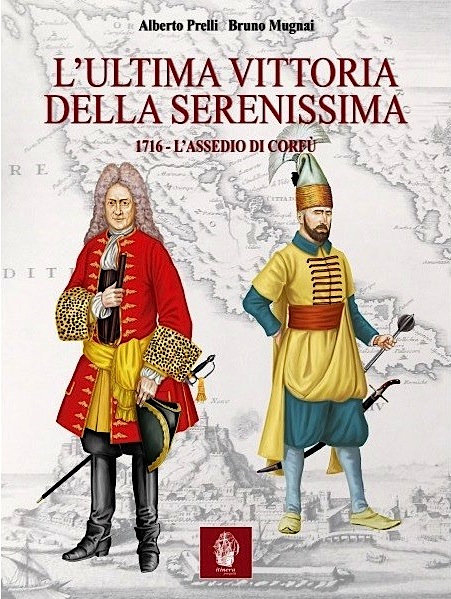 Nel 1716 la Repubblica di Venezia riportò l’ultima grande vittoria contro l’impero ottomano. L’isola di Corfù, definita “antemurale della cristianità”, fu invasa da un esercito turco forte di 30.000 uomini, che mise sotto assedio la fortezza e la città di Corfù. La Piazzaforte fu difesa da circa 5.000 fanti della Serenissima al comando di Matthias von Schulenburg. Dopo venti giorni di attacchi e bombardamenti gli Ottomani frettolosamente abbandonarono l’assedio e l’isola. Il volume, a 300 anni dalla battaglia, è una cronaca dettagliata degli eventi ricavata da relazioni, dispacci ufficiali e lettere private dello Schulenburg, comandante delle forze terrestri, del tenente colonnello Demetrio Stratigò, suo “aiutante generale”, di Andrea Pisani, Provveditore Generale da Mar, di Andrea Corner, Capitano Estraordinario delle Navi, di Nicolò Erizzo, Commissario in Armata e di altri personaggio meno noti o anonimi. Ne esce un quadro vivido e feroce di assalti, ritirate e audaci sortite dipinto sul corpo della fortezza di Corfù che, alla fine, ne uscì ferita ma vittoriosa. Gli autori Alberto Prelli, per la parte veneziana, e Bruno Mugnai, per la parte ottomana e le tavole uniformologiche, hanno voluto arricchire la cronaca della battaglia con una breve disamina della composizione dei due eserciti che si confrontarono in quel primo ventennio del ‘700.