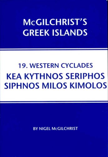 Kea is unexpectedly rich in history and variety of landscape. The island is particularly good for walking; its valleys favour many species of wild flowers and its upland slopes support magnificent Valonia oaks. In historic antiquity there were four important cities on Kea and the remains of Karthaia constitute one of the most evocative sites in the Aegean. Most remarkable is the Lion of Ioulis, one of the earliest and largest pieces of monumental sculpture in the Greek world. Kythnos has a peaceful rhythm of life which has changed little over time. There are two attractive villages Chora and Dryopida and plentiful hot water springs at Loutra in the northeast. The island's repeatedly indented coastline affords a wide variety of small coves and beaches. Seriphos has beautiful bays for swimming and offers many opportunities for walking, with a number of ancient rural churches along the way. What stays in the memory longest however is the image of the island's dramatic chora, clustered around its peak far above the island's harbour. Siphnos is a delight to the eye above all and furnishes more abiding images than many of its neighbours: the stately villages of elegant 17th century churches and well-maintained neoclassical mansions; the rural valleys, full of dovecotes and chapels, watched over by both ancient towers and more recent monasteries from every summit; the chapels built improbably on rocks projecting into the sea; the ancient columns and sarcophagi that adorn the alleyways of Kastro. Aghios Andreas in the centre of the island constitutes one of the most interesting archaeological sites in the Western Cyclades. Kimolos is a delightful island: peaceful, unpretentious and full of striking landscapes. The northeast of the island is scarred by the quarrying of fuller's earth. The Kastro of Chorio dates from the 15th century. The volcanic terrain of Milos gives rise to fascinating mineralogy: from the pure obsidian, which has been exported from Milos for at least 8000 years, to kaolin, haematite, alunite, manganese, bentonite, perlite, baryte and anderite. Milos is a busy working island with its population nearly all concentrated in the north; the south and west are wild and largely empty.