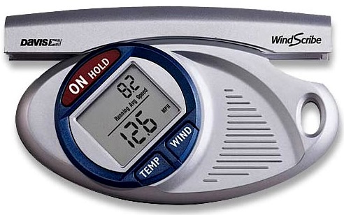 Ultrasonic wind meter uses technology to read current wind speed, highest positive speed (headwind), lowest negative speed (tailwind), 5-second average, and running average. Select from mph, km-h, fpm, m-s, f-s, or knots, plus temperature and wind chill in tenths of °F or °C. Sensitive to breezes as low as 0.4 mph, yet withstands winds as high as 150 mph. Includes replaceable 3-volt lithium battery, lanyard and mounting bracket. Battery lasts up to 600 hours.