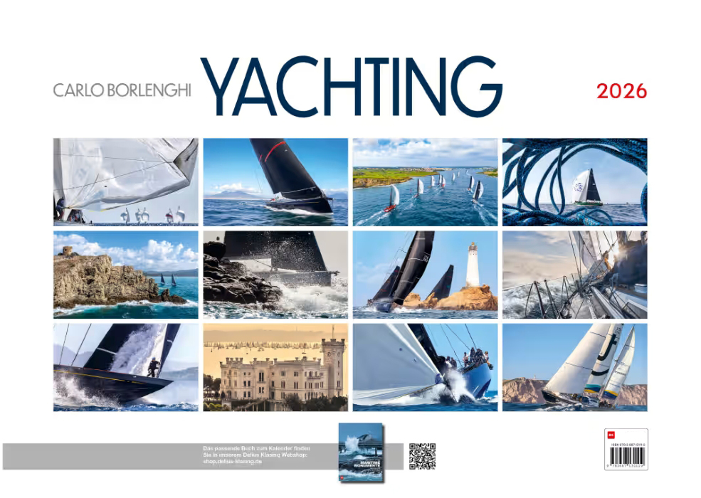 Carlo Borlenghi is one of the stars in his field; he is considered one of the best international photographers in yachting - water is not his element. Carlo Borlenghi comments that he can’t swim: "It keeps you alert and you never lose respect for the sea”. He has photographed everything that is available in the sailing sport for large and small events, as well as aesthetically. Born in Bellano, Italy, he grew up on Lake Como, studied hydraulics and - to finance his studies -began as a hobby photographer selling his pictures to yacht owners: the beginning of a steep career. He developed into a master of his craft. He has been awarded several prizes and has worked for the best magazines in the world for many years. Since 1983 he has been recording the spectacular moments of the America’s Cup, first for various Italian syndicates, later as an official photographer. And as such it is now found on most other major regatta courses in the world - Carlo Borlenghi è uno dei più grandi fotografi di yacht a livello internazionale - l'acqua non è il suo elemento. Carlo Borlenghi commenta che non sa nuotare: "Questo ti tiene in allerta e non perdi mai il rispetto per il mare”. Ha fotografato con abilità ed estetica tutto ciò che c'è in ambito nautico, grandi e piccoli eventi. Nato a Bellano, in Italia, è cresciuto sul lago di Como, ha studiato idraulica e ha iniziato - per finanziare i suoi studi -come fotografo amatoriale a vendere le sue immagini ai proprietari di yacht: l'inizio di una carriera ripida. Divenne un maestro nel suo campo. Pluripremiato, lavora da molti anni per le migliori riviste del mondo. Dal 1983 ha registrato i momenti più spettacolari dell'America’s Cup, prima per diversi sindacati italiani e poi come fotografo ufficiale. Ed è così che oggi si trova sulla maggior parte delle altre grandi piste di regata del mondo. Calendario con didascalie in tedesco.